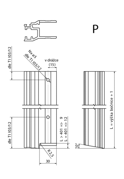 Pr. zakończ. K20, bok, Al, 601 mm, P