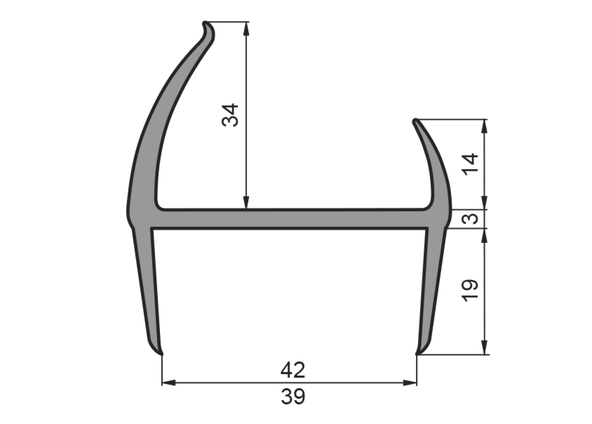 Uszczelka PVC 39/42mm, szara, 5m Uszczelka PVC 39/42mm, szara, 5m
